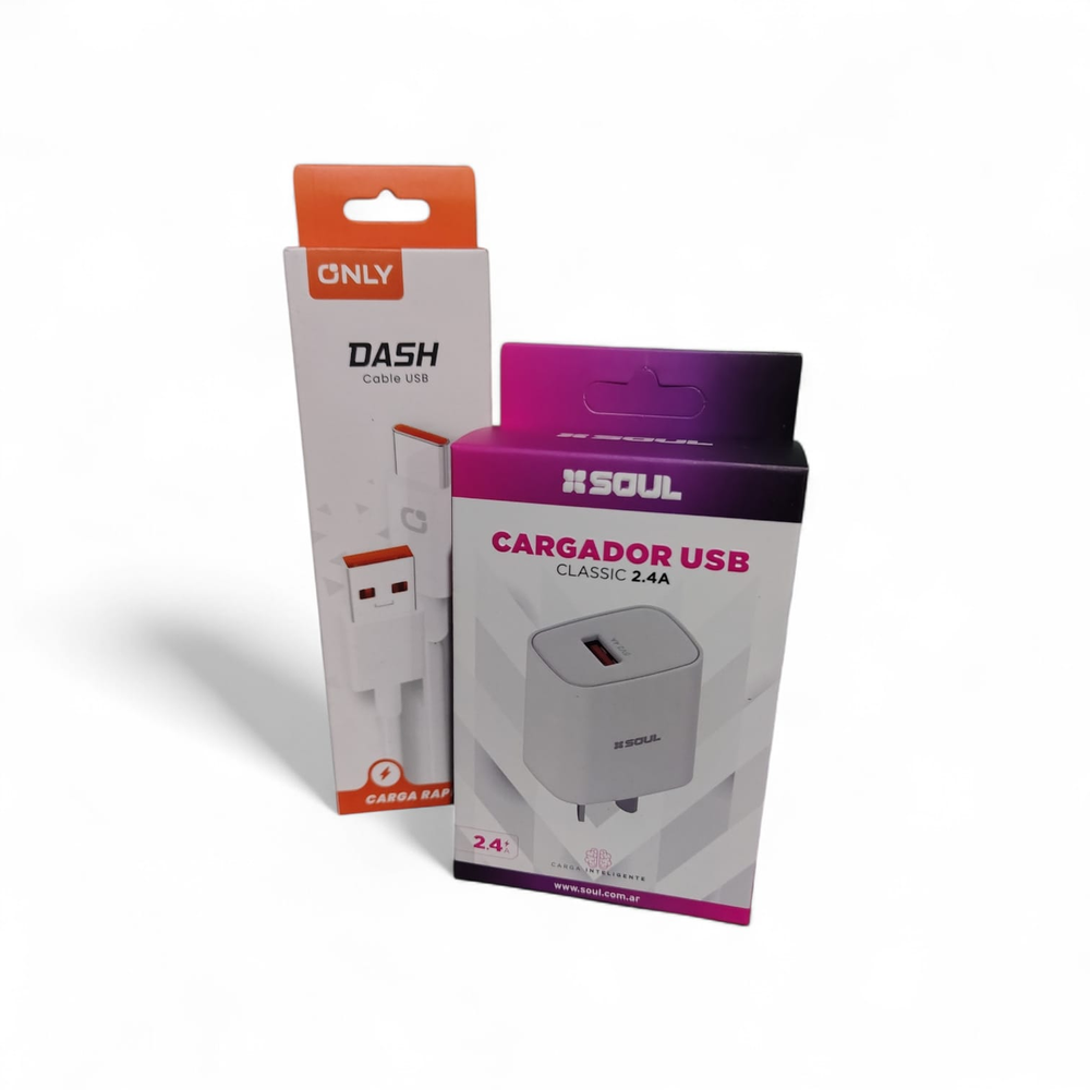 CARGADOR + CABLE USB (TIPO C O IPHONE)